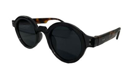 Estilo clásico con un giro moderno: gafas de sol redondas en negro con detalles carey. Su montura gruesa y brillante aporta presencia, mientras que el sutil patrón interior y los acabados metálicos en las bisagras elevan el diseño. Las lentes oscuras ofrecen protección solar eficaz, convirtiéndolas en el accesorio perfecto para un look urbano con personalidad.