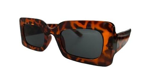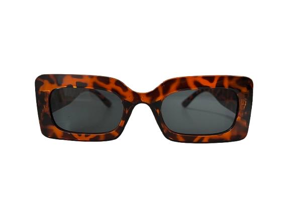Gafas con estampado carey, que combinan tonos marrón y negro en una montura rectangular elegante. Sus lentes oscuras ofrecen una protección solar eficaz, mientras que el acabado carey aporta un toque sofisticado y atemporal. Ideales para quienes valoran el estilo sin esfuerzo.