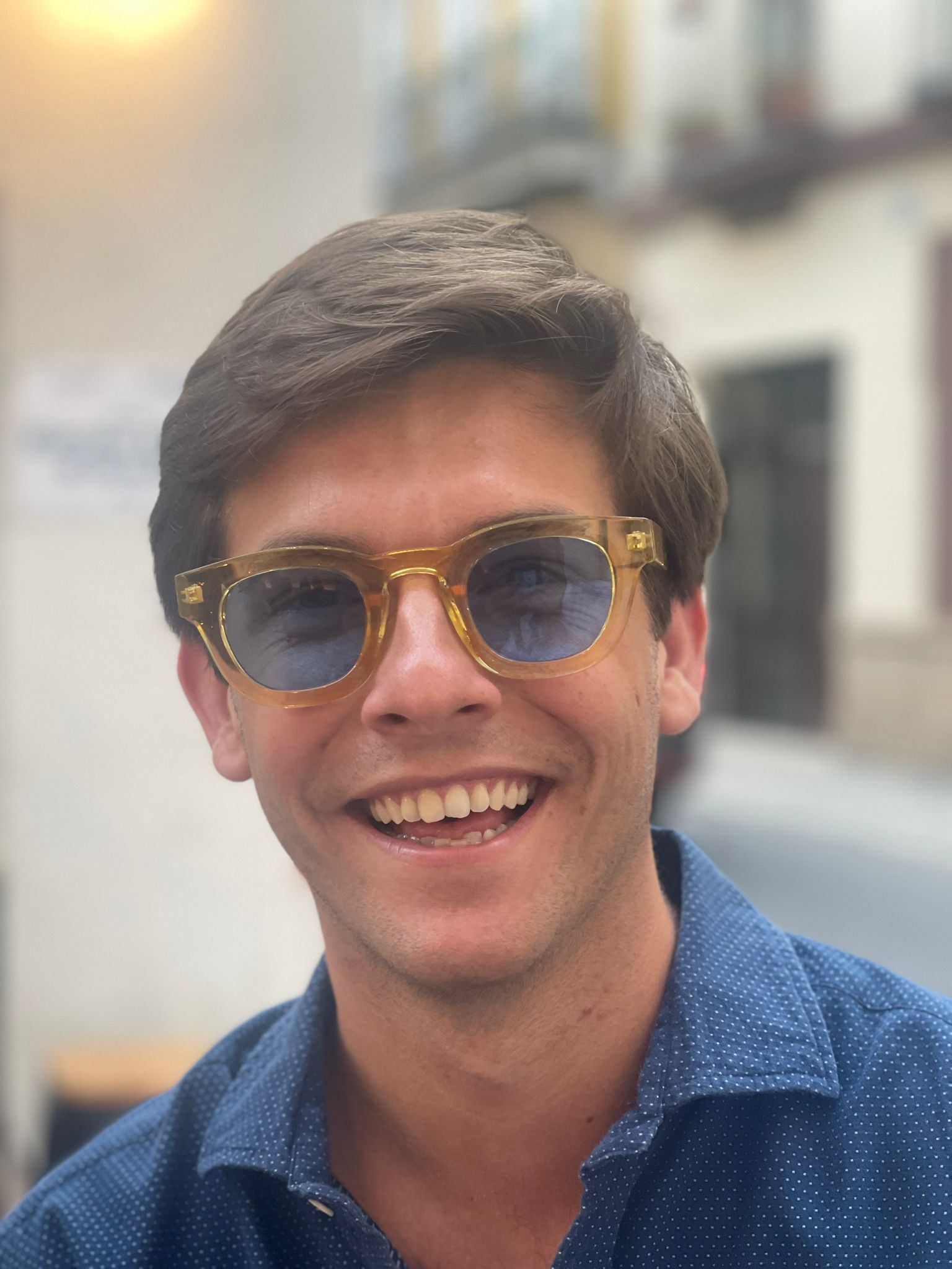 Una montura amarilla translúcida que se complementa con cristales celestes, logrando un look ligero y moderno, ideal para quienes buscan un toque más fresco.