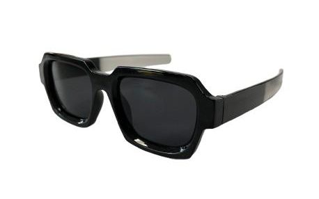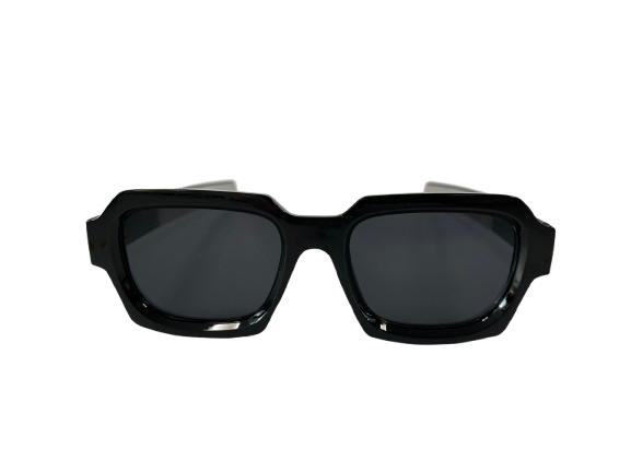 Gafas de sol con montura negra y lentes oscuras. El diseño es rectangular y moderno, con patillas también negras y un degradado a transparente. Perfectas para un look casual y estiloso.
