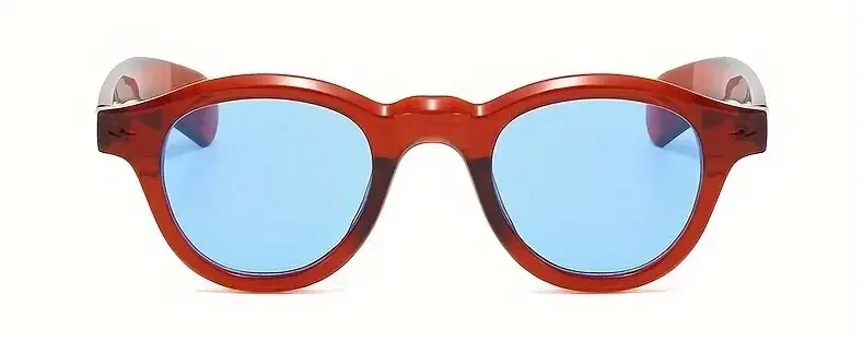 Montura roja clásica combinada con lentes de cristal azules. Un guiño al estilo vintage.