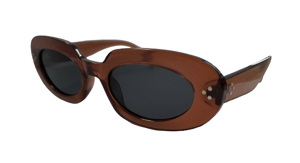 Gafas de sol con montura marrón y lentes oscuras. Diseño elegante y versátil con un acabado pulido. La forma ovalada de la montura resalta el estilo moderno, mientras que los pequeños detalles en las patillas aportan un toque distintivo. Perfectas para cualquier ocasión y con protección UV.