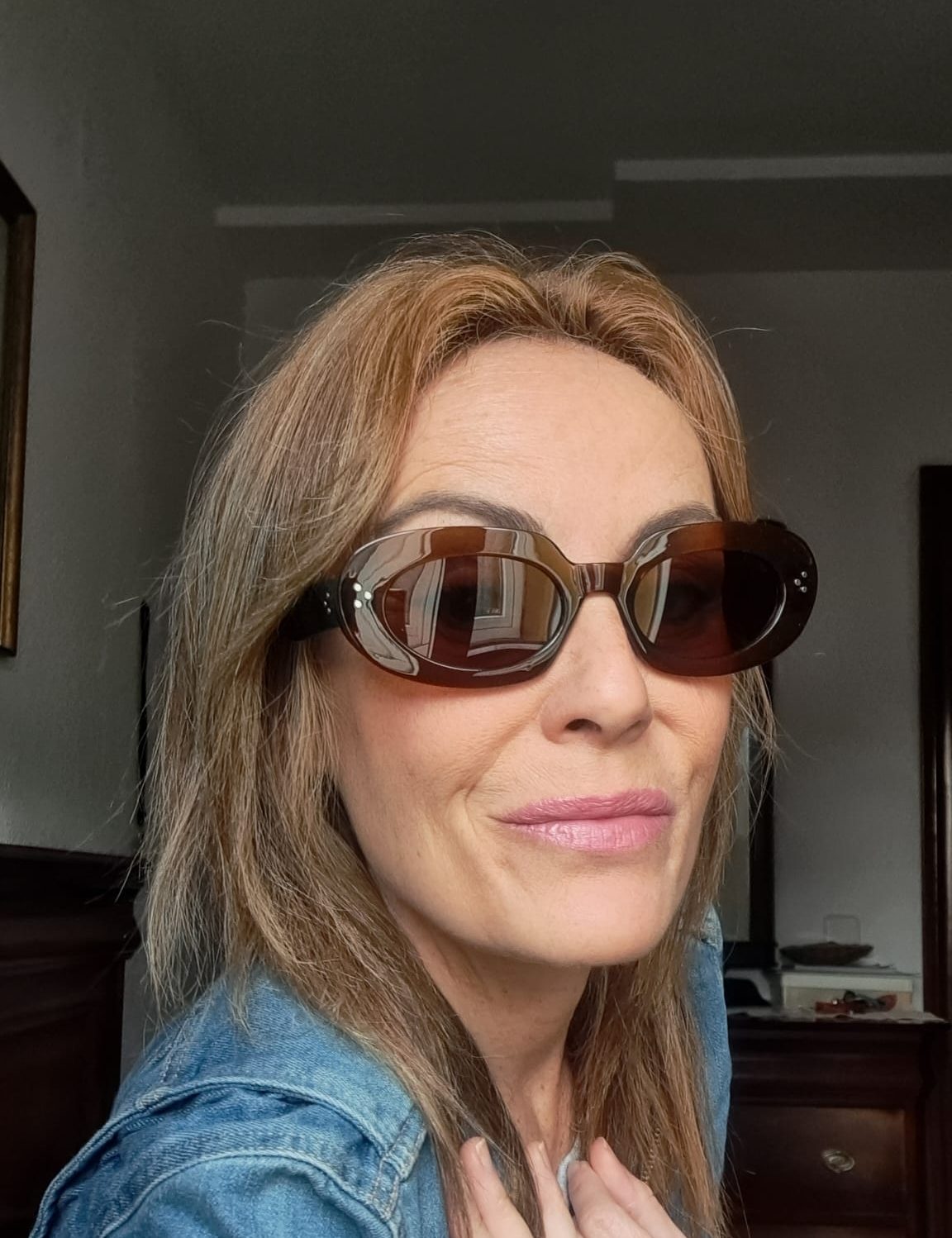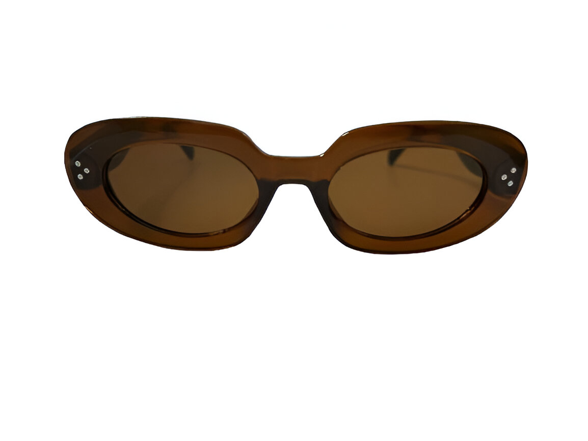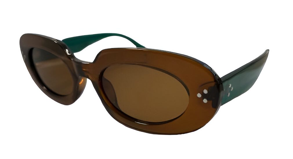 Gafas de sol con montura oscura y patillas verdes. Diseño moderno y llamativo con un contraste elegante entre la montura de color marrón oscuro y las patillas en un tono verde vibrante. Las lentes tienen un tinte marrón caramelo que complementa el diseño. Pequeños detalles metálicos en la montura añaden un toque sofisticado. Ideales para quienes buscan estilo y protección UV.