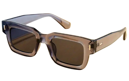 Gafas de sol con montura gris y cristales oscuros. Elegancia discreta y perfecta para cualquier ocasión.