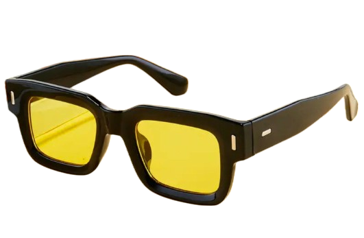 Gafas de sol con montura negra y cristales amarillos vibrantes. Un diseño retro y atrevido que ilumina cualquier look.