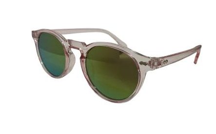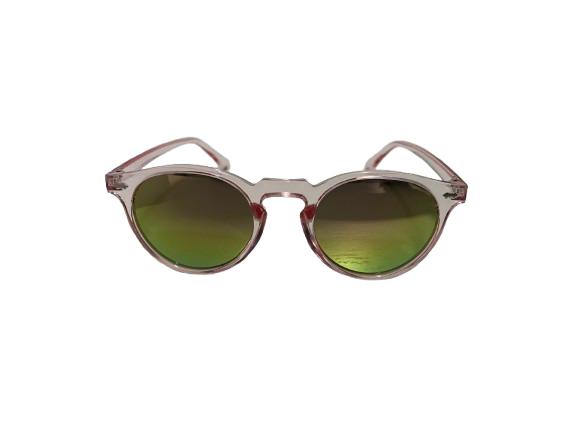 Gafas de sol redondas en rosa translúcido con lentes espejo. Su diseño combina una silueta clásica con colores vibrantes y acabados contemporáneos, creando un accesorio llamativo y fresco. Ideales para quienes buscan destacar con estilo propio y protección solar eficaz.