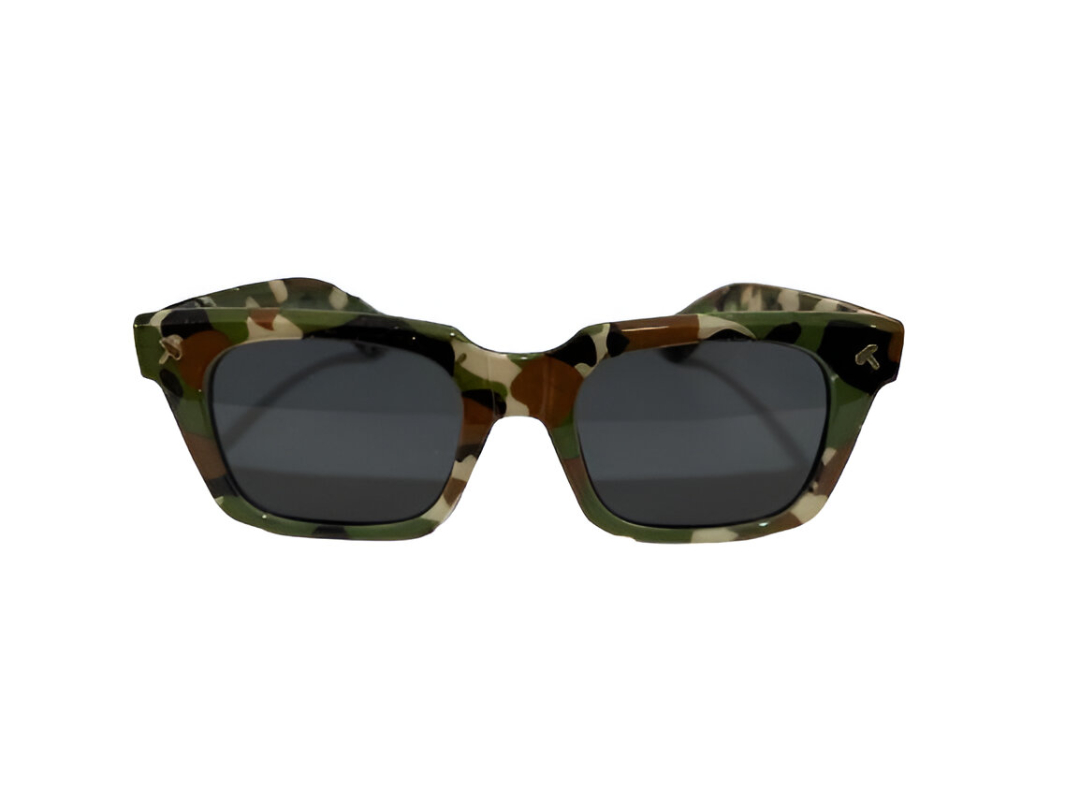 Combina estilo y funcionalidad con estas gafas de sol de montura rectangular y estampado camuflaje en tonos verdes, marrones y beige. Su diseño robusto y moderno ofrece una protección óptima contra el sol gracias a sus lentes oscuras, ideales tanto para actividades al aire libre como para un look urbano con personalidad.