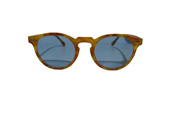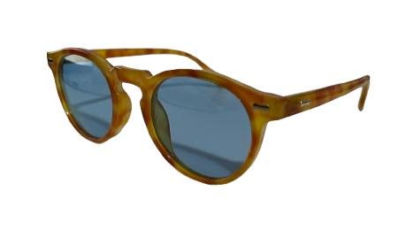 Clásicas con un giro moderno: gafas de sol redondas en carey con lentes azuladas. Su diseño retro con puente en forma de cerradura y montura en tonos ámbar y marrón aporta calidez y estilo. Las lentes tintadas en azul ofrecen protección solar eficaz y un toque distintivo, ideal para quienes buscan un accesorio con personalidad y elegancia.