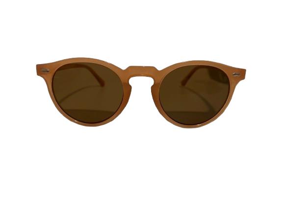 Natural y elegante: gafas de sol redondas en tono coral con lentes oscuras. Su diseño clásico con acabado brillante y montura ligeramente curva aporta calidez y estilo. Las lentes marrones ofrecen protección solar eficaz, convirtiéndolas en el accesorio ideal para quienes buscan un look relajado pero con personalidad.