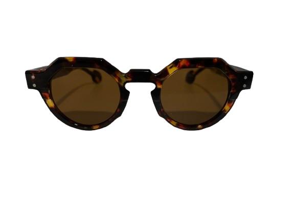 Audaces y sofisticadas: gafas de sol geométricas en carey con lentes oscuras. Su diseño único combina formas angulares con una montura en tonos ámbar y marrón, creando un look moderno y elegante. Las patillas gruesas y los detalles metálicos aportan carácter, mientras que los cristales oscuros ofrecen protección solar eficaz. Ideales para quienes buscan destacar con estilo propio.